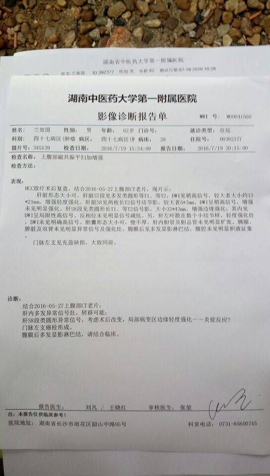 我爸是2015年三月份的时候,有天晚上肝部突然剧痛,痛的一个晚上都没有睡觉,送到医院检查结果是肝癌晚期,马上转到上海东方肝胆医院做介入,从发病到现在一共做了五次介入,一次射频消融,一次伽马刀,我感觉他的身体一次不如一次了,现在在家里,吃饭是强迫自己吃的,吃什么都没胃口,白细胞老是下降,打了升白细胞的针后,过几天又下降了,早上散步的时候腿都是软的,人比以前黑了好多,我们做儿子痛心疾首啊,求好心医生或好心人给我指条明路吧!!!跪求!!!!