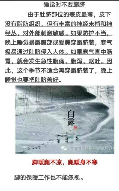 把衣服束在裤腰里,以免露出小肚子,小脚丫套上透气舒适的袜子,以防半夜踢被子里脚部受凉,睡前泡泡脚有助于睡眠哦