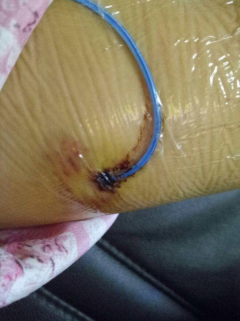 我感觉护士给你贴的膜都不正常。正常应该这个管有个弯度 不应该是直的。可能血就不能出来了、明天去找医生吧、