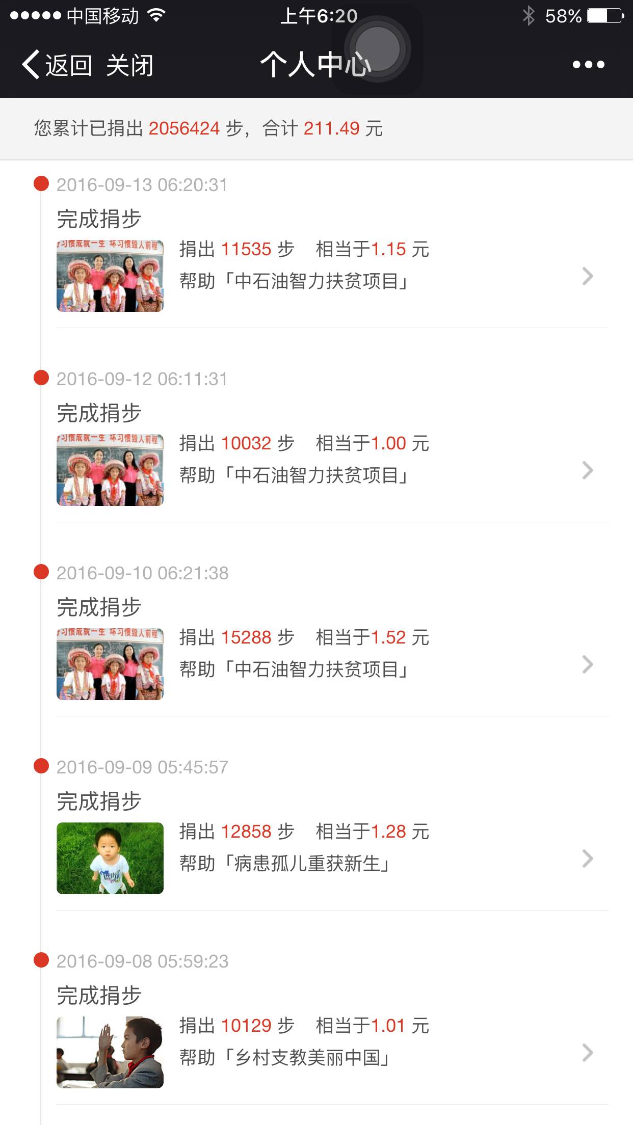 大家早上好!呵呵~不知不觉我用我走的步数已经捐出200多元钱了,好开心呢