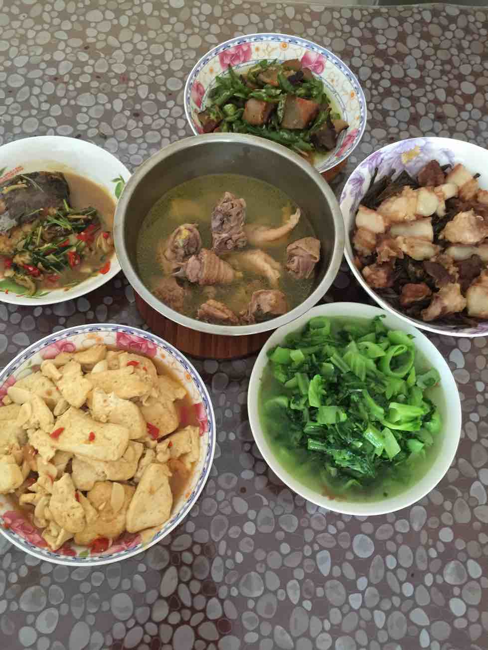 四个人的饭菜,也不好多做,就简单做了六个菜,六六大顺吧,好彩头!