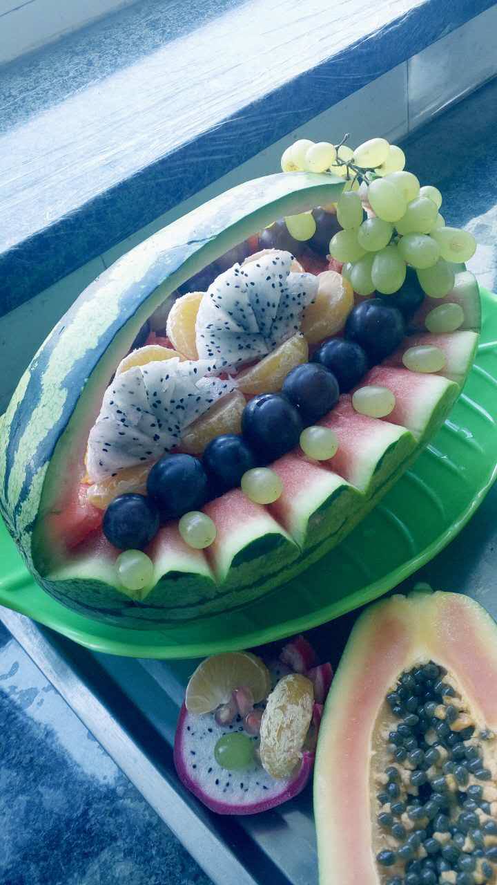 给嫦娥姑娘的瓜果祭品准备好了,造型不错吧。