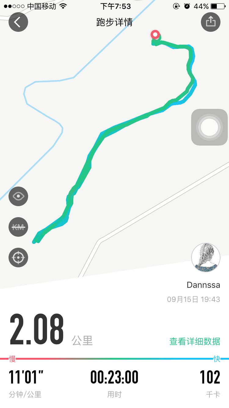今天运动量,早上二十分钟甩脂运动。晚饭后夜跑2100米,今晚也有进步,坚持到了1700米,后面就是快走。⛽️⛽️⛽️