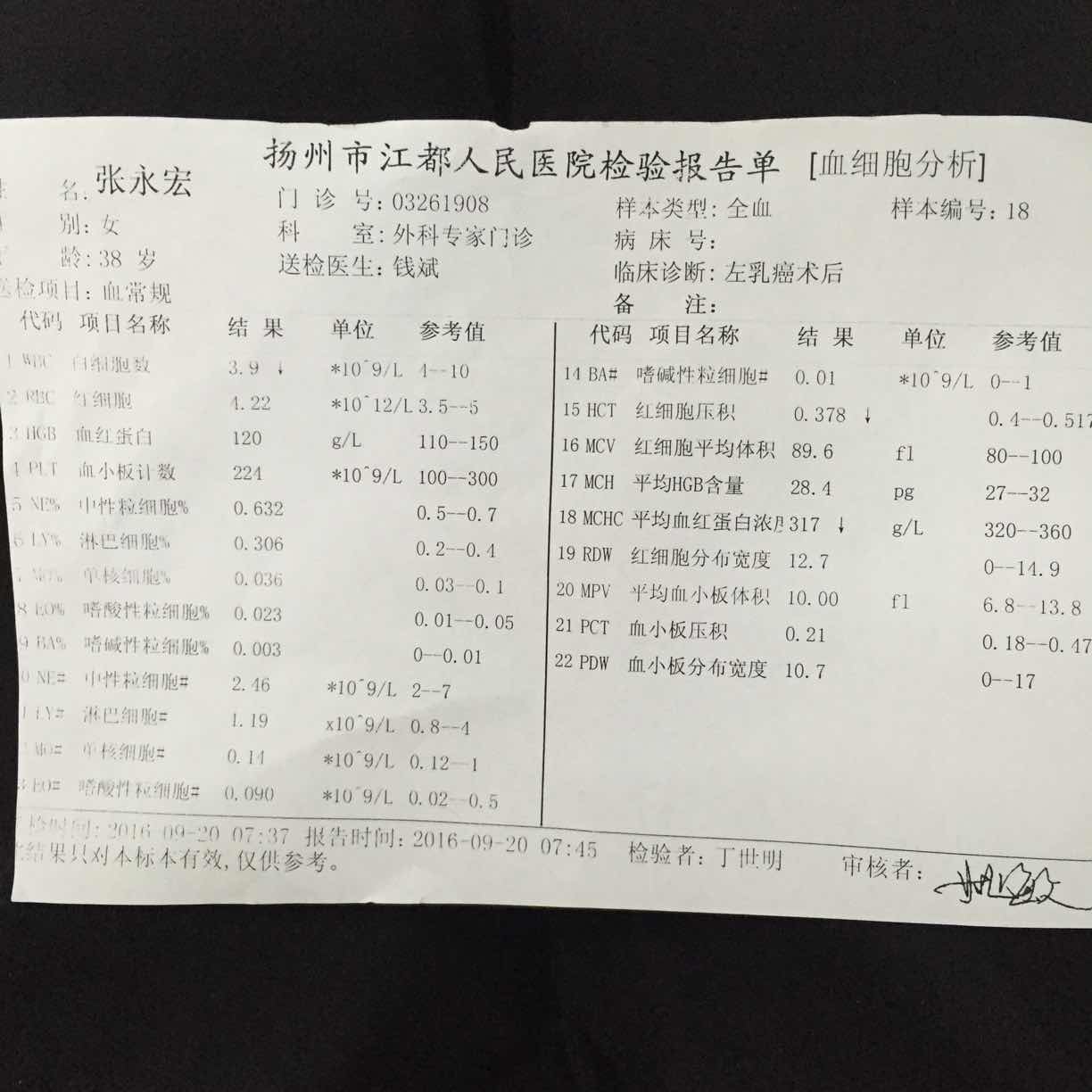 恭喜,我今天也复查了,结果也挺好的