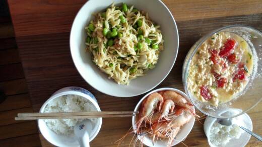 到上海放疗感觉第一要吃好,第二要住好,第三要实惠,毕竟是工薪阶层不会花很多的钱,幸好有病友介绍住到了离医院不远的一家青年旅社,价钱便宜,可以自己做饭吃,环境也不错,有病友关照谢谢了,这不烧的第一次中餐,本人下厨,烧的菜不好看,但有营养,我们另外的病友还夸奖呢!