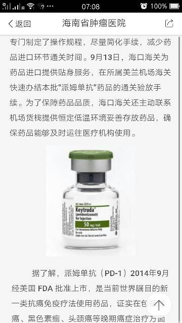 据了解,派姆单抗(PD-1)2014年9月经美国 FDA 批准上市,是当前世界瞩目的新一类抗癌免疫疗法使用药品,证实在包括肺癌、黑色素瘤、头颈癌等晚期癌症治疗方面有显著疗效,有望实质性改善患者生存期。美国前总统卡特曾罹患晚期黑色素瘤,用“PD-1”治疗后取得明显效果。随着本批外国新药进入中国,博鳌乐城国际医疗旅游先行区开启了国外批准上市的药品进入中国的大门。