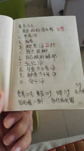 这里面我是五红汤每天三顿喝,海参每天一根,牛尾汤隔一天喝两顿,中药我没用过。