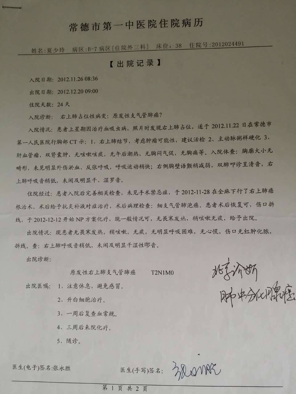 我爸也是肺腺癌,你们是在常德做的治疗吗?