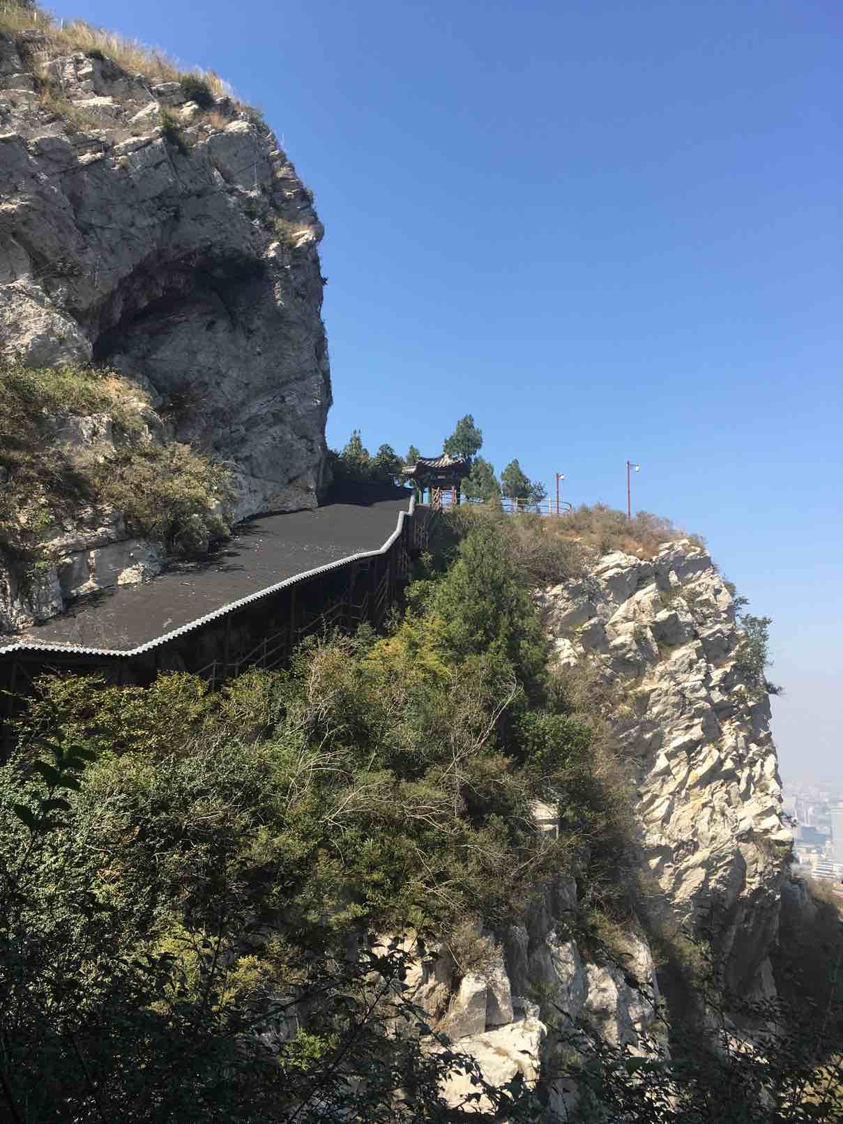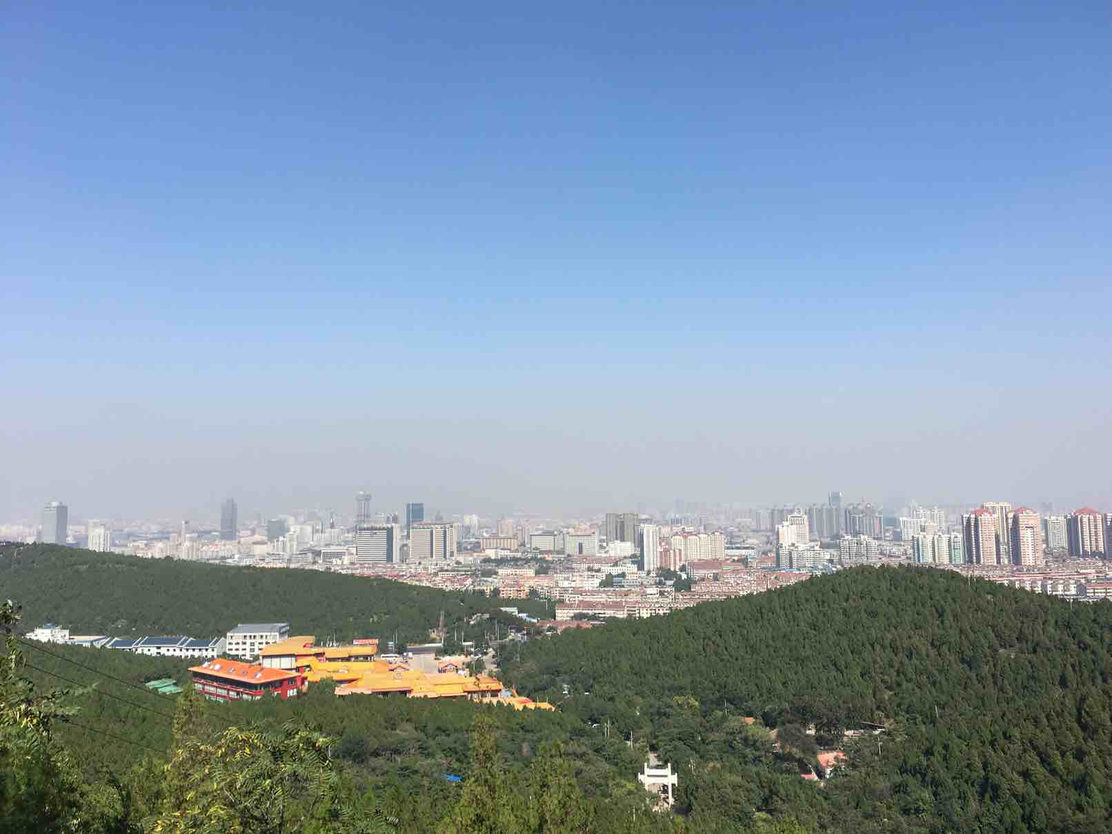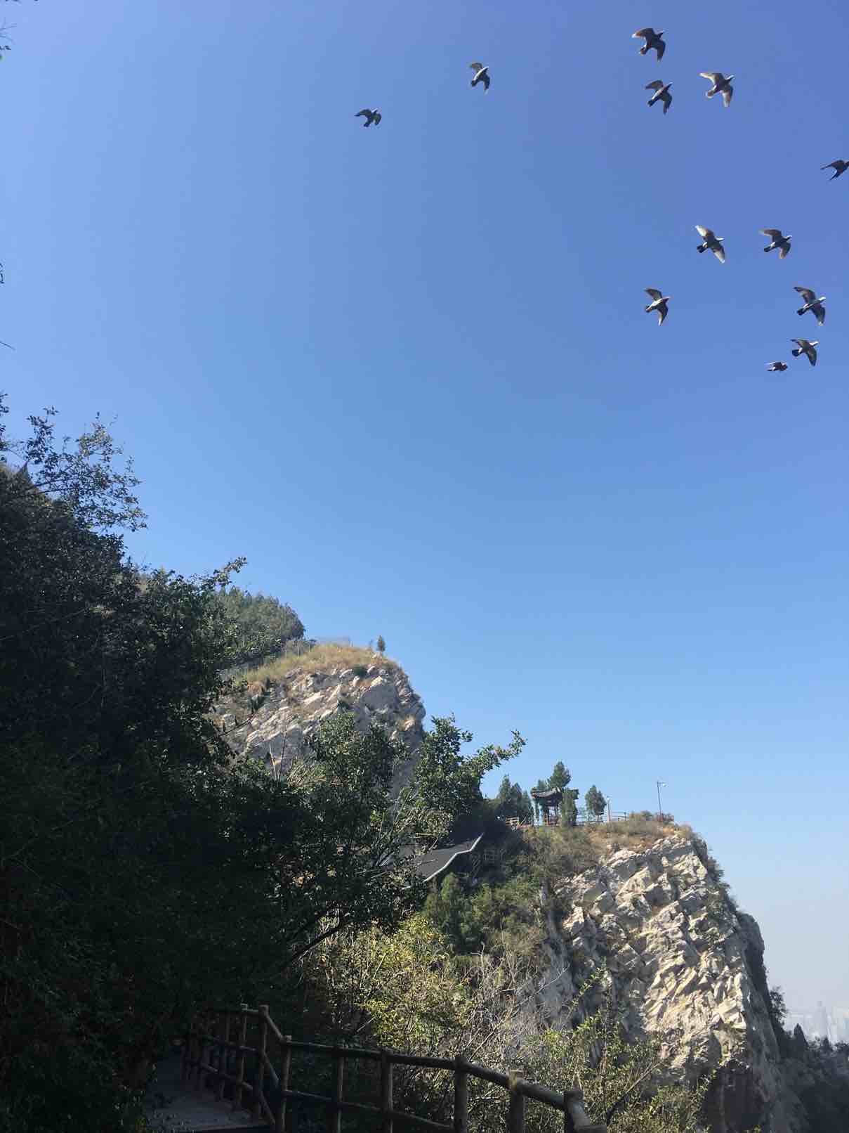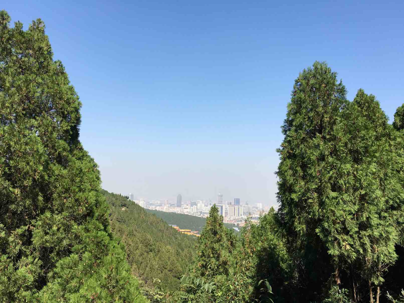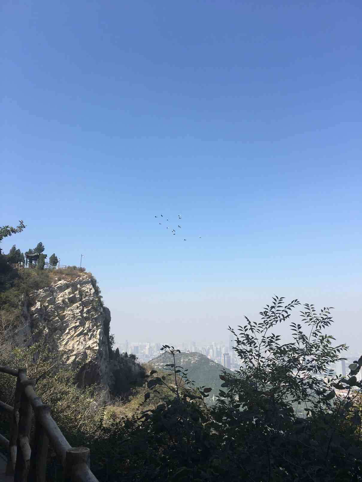 站在山顶往下看,心情霍然开朗,蓝天白云太美了。