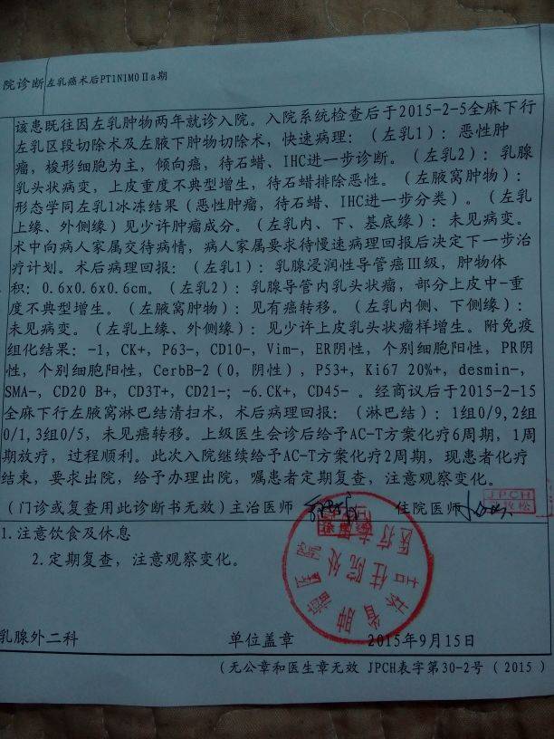 三阴,肿块很小,但有腋窝转移属于T1N1M0 IIa期