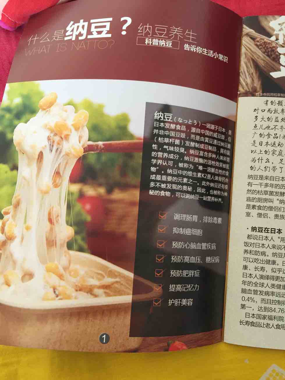 纳豆是将蒸煮后的大豆(这次我用了黑豆),接种纳豆菌,经微生物发酵而成的一种豆制品。纳豆的保健作用主要有:溶解血栓,调节血脂、血压及预防粥状动脉硬化,调节血糖,调节肠胃润肠通便排毒养颜,防止骨疏松,改善女性更年期综合症,抗菌、抗氧化、抗癌等保健作用。