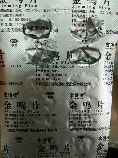 一个是因为职业病,我是一名幼师,要一直用嗓子,去药店买了[宏济堂]金鸣片(如下图),这牌子的吃了会过敏,我也是吃了三次后才发觉的;