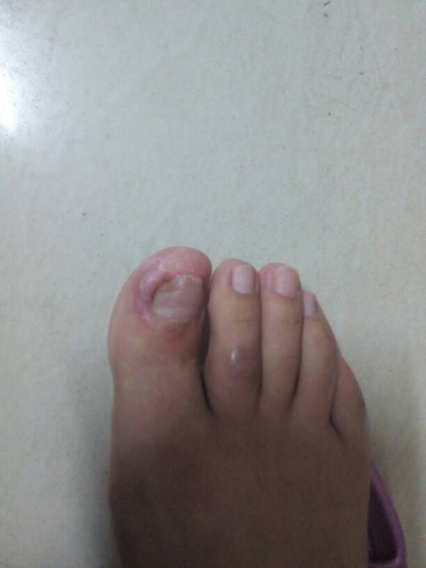 甲沟炎感染了,正规足浴处理还是有经验的回来用点消炎药