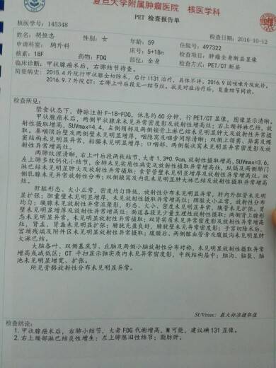 严重了,那两个是复发转移灶,根据PETCT结果中SUV>2.5时,可以考虑恶性肿瘤。