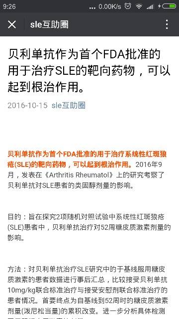 标题党……看了英文原文,通篇都没有提到治愈这个字眼,只是跟激素做了个对照试验,最后结论就是在治疗中应用贝利单抗可能可以减少激素类固醇的用量,英文原文还是用的 may be 字样……描红的第一句话跟这个对照试验真的关系不大…更不用说治愈了,放到这篇文章前面真是有点驴头不对马尾