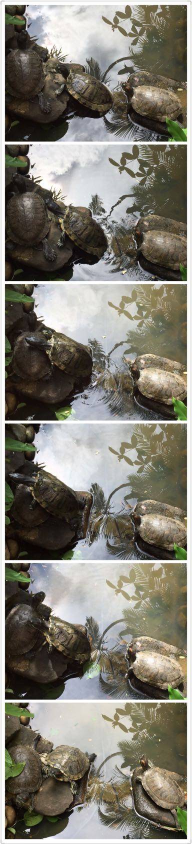 还有更可爱的,有只乌龟想爬到另一只乌龟的背上咋都爬不上去