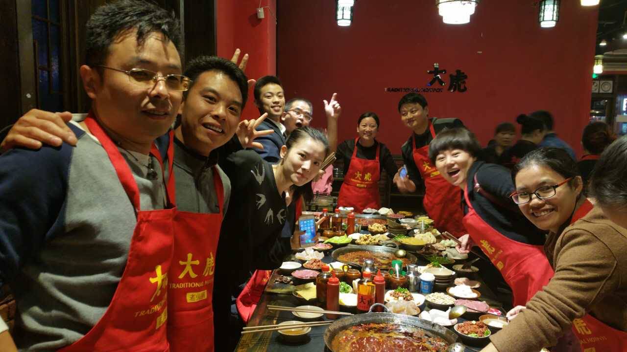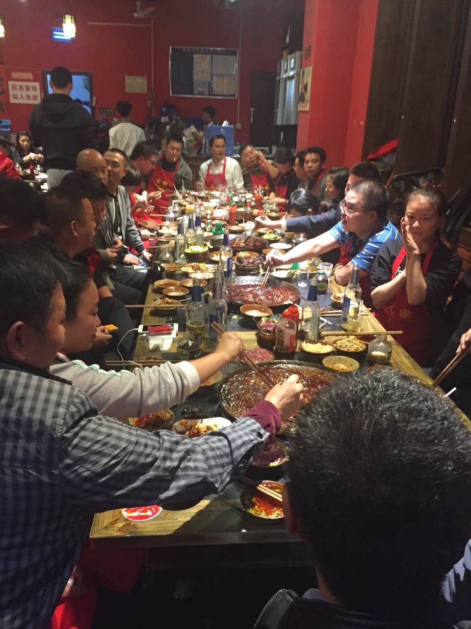 昨天我在单位同事群里发信息说想吃重庆火锅,没想到无意中的话,同事们就开始张罗了,宁大姐把单位所有部门都召集一起,定于今天下午去重庆大虎火锅聚餐。大家有序的把人员,车子安排好后,并特别安排车子来接我。四十几个人啊就像迎亲一样的把我接走。席间,鲜花,掌声,关切的话语和祝福顿时泪奔了我。