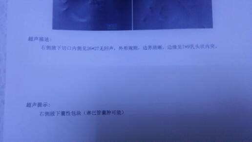 我做的保乳手术,明天第四次化疗了,可是今天又查出腋下囊性包块,超声报告上说:右侧腋下切口内侧见26*27五回声,外形规则,边界清晰,边缘见7*9乳头状内突。主治医生说过一个月再检查一下,现在不管它,可是心里好担心,这不是转移了?