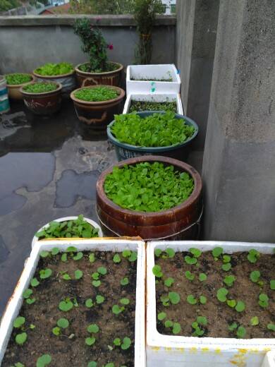 告诉你们我都种了些什么,有菜心.冬芫菜.小油菜.油麦菜.大白菜.波菜.香菜.韭菜.大蒜