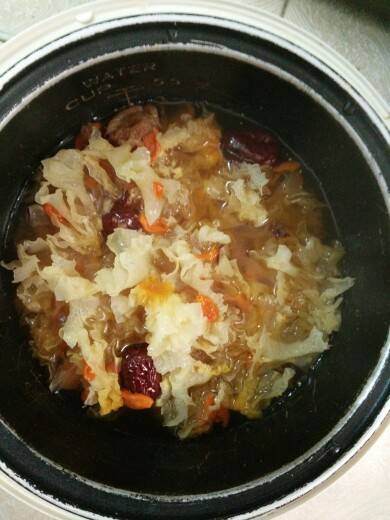 样子不错,好像水放少了点,银耳没熟透!