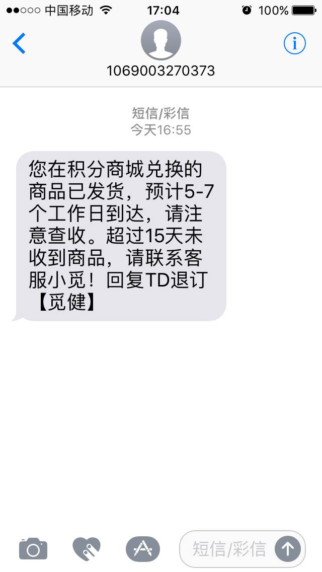 刚收到积分兑换的发货信息了,果然是月底统一发货,上次的兑换,看到别人有信息,我还等短信呢,没想到直接等到了杯子,这次我有短信了,看