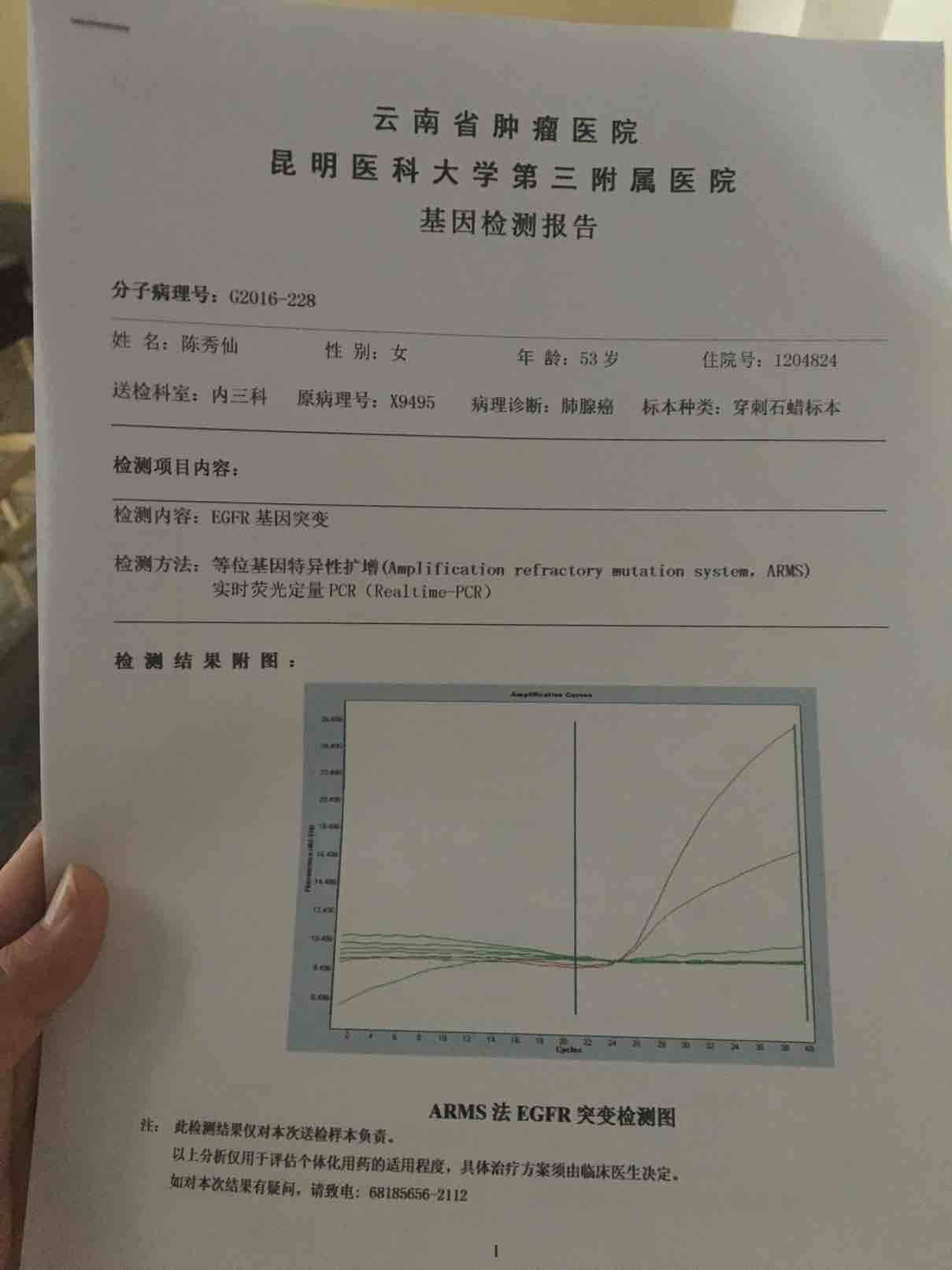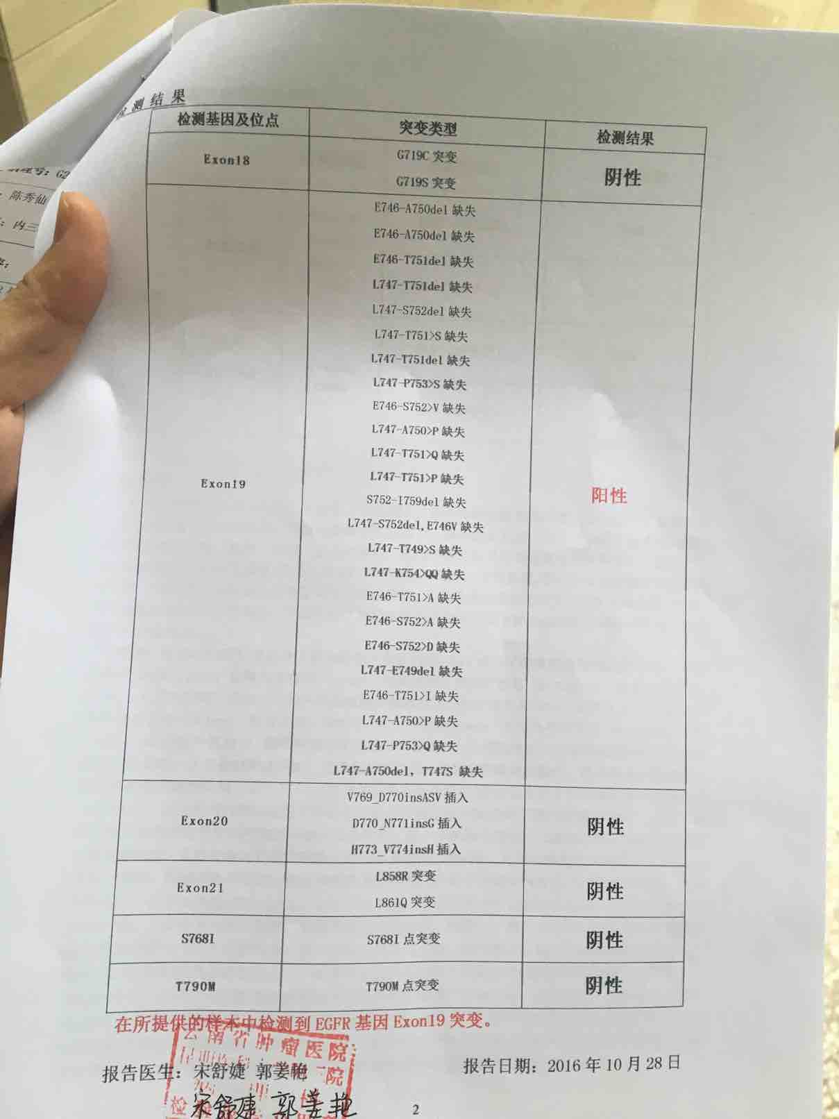 我妈呢基因检测在肿瘤医院做了一次,上海什么公司做了一次,都没有突变,没办法,妈妈脑转疼的不行了,试试凯美纳,之前吃的艾坦吃了吐血,已经停了
