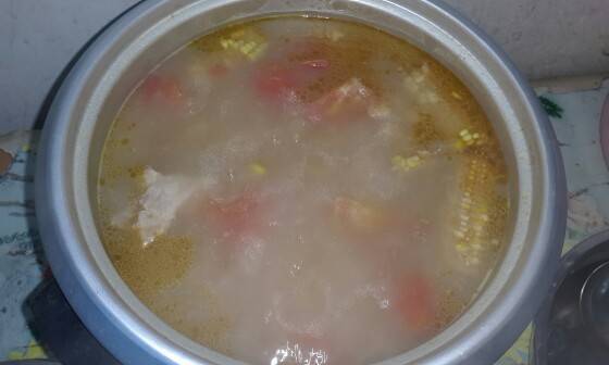 大骨头玉米西红柿炖的汤?