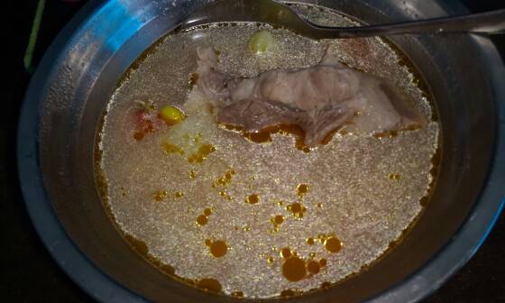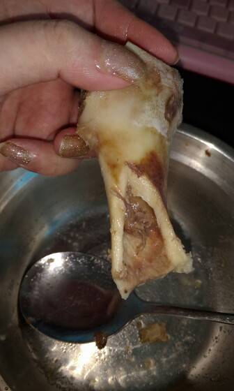我用电饭煲的,所以很好的控制火候,大概煲一个多小时吧,香味已经飘过来我房间了,😍😍😍所以,我去看了下,差不多啦,在煮一会我就装起来一兜喝啦!装了一块筒骨头,汤喝了,吃了马铃薯,玉米,最后😏😏把这块筒骨头也吸吸吸的,吸中间那块筒油出来😜