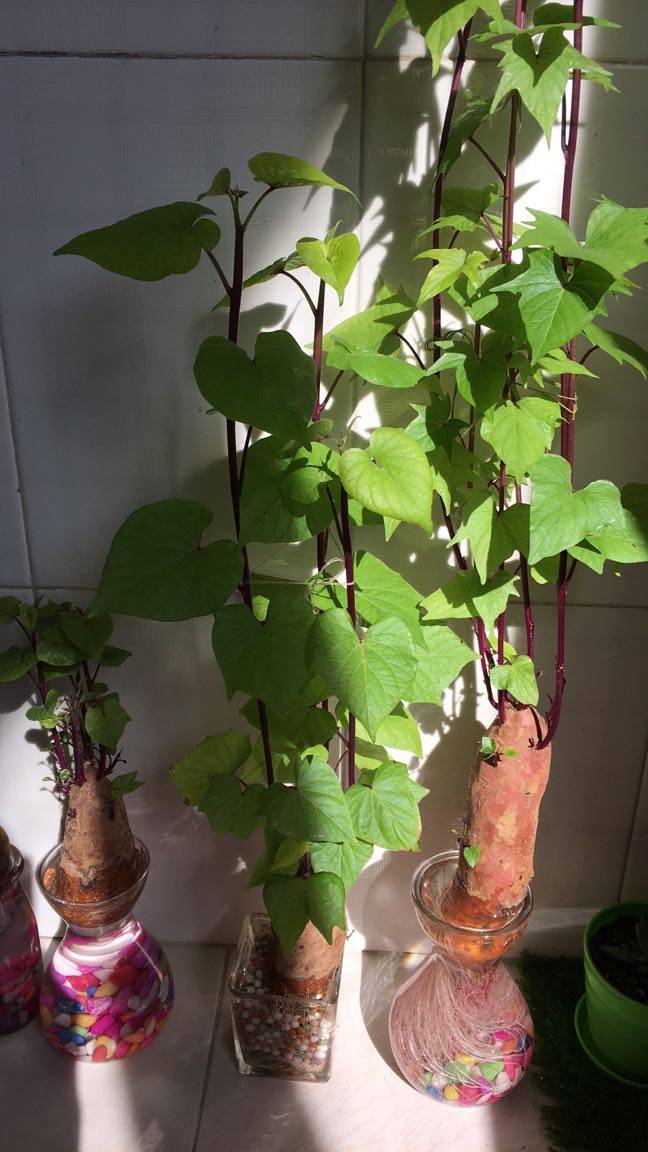 这山芋养的真好,我的山芋刚冒芽。