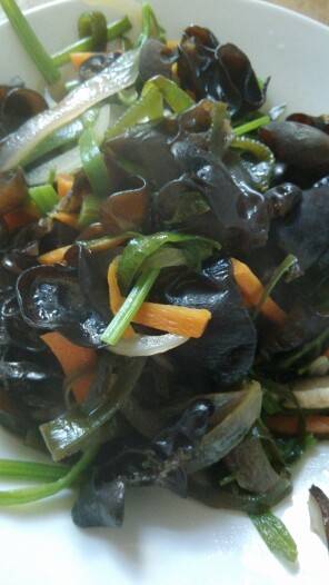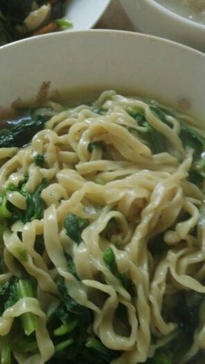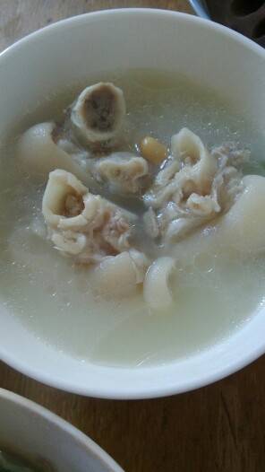 今天嗮晒我的午饭,猪爪黄豆汤,木耳洋葱胡萝卜芹菜凉拌,青菜面条一碗