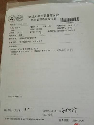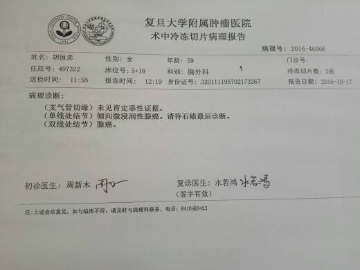 这个是低分化吧,我看淋巴结好像没有转移,不知道实体瘤是多大?