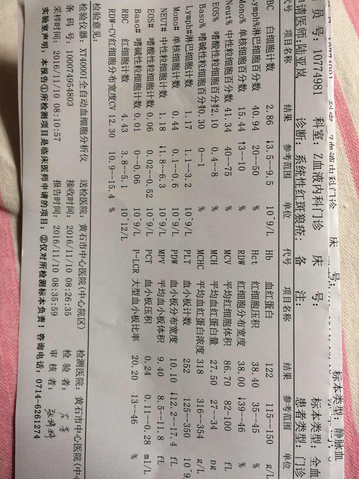 还好没几个白细胞太低了,吃维生素B4