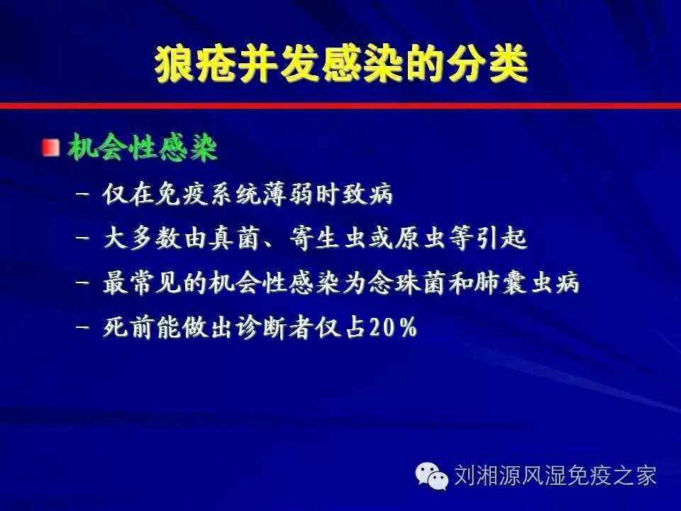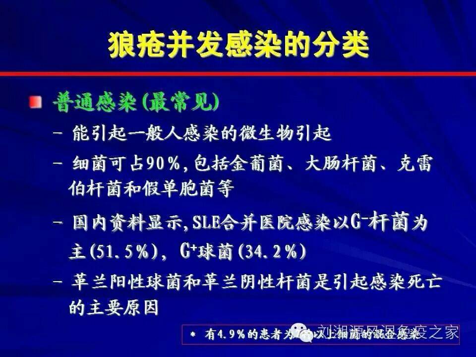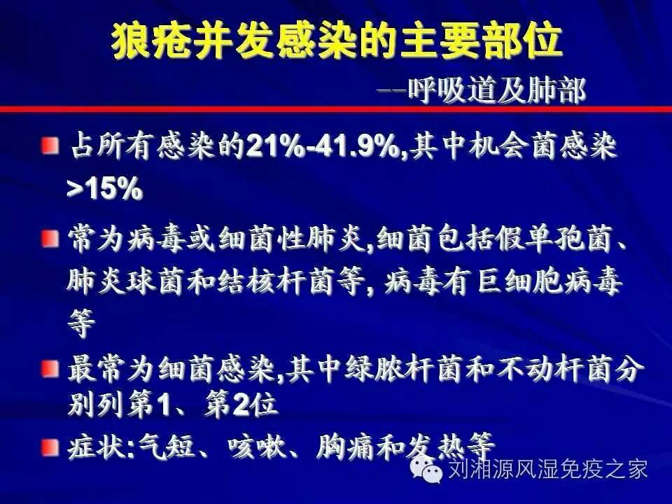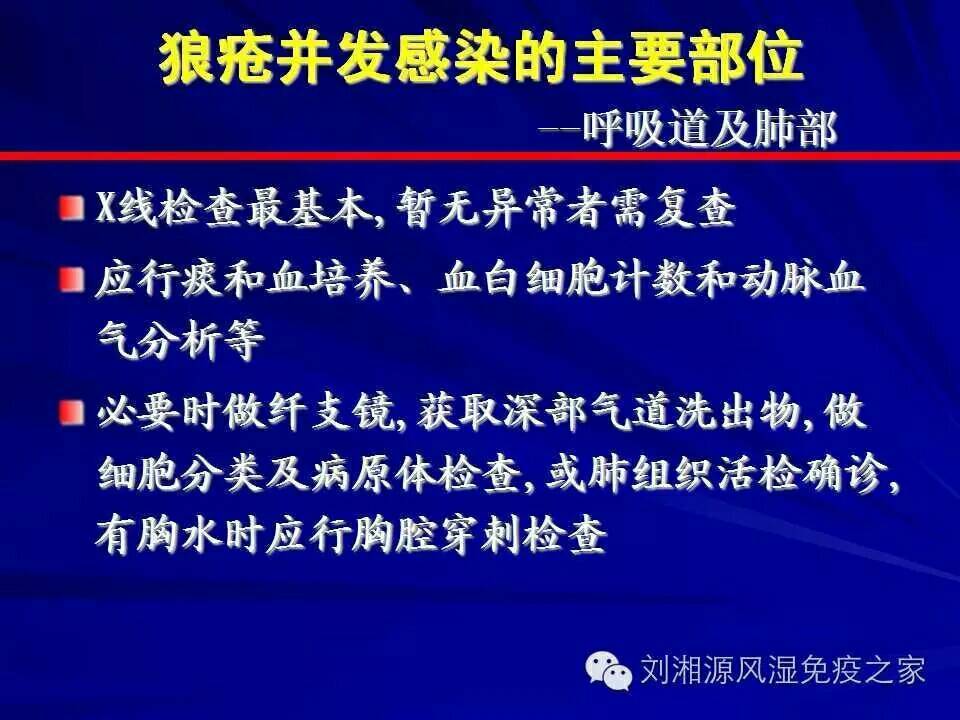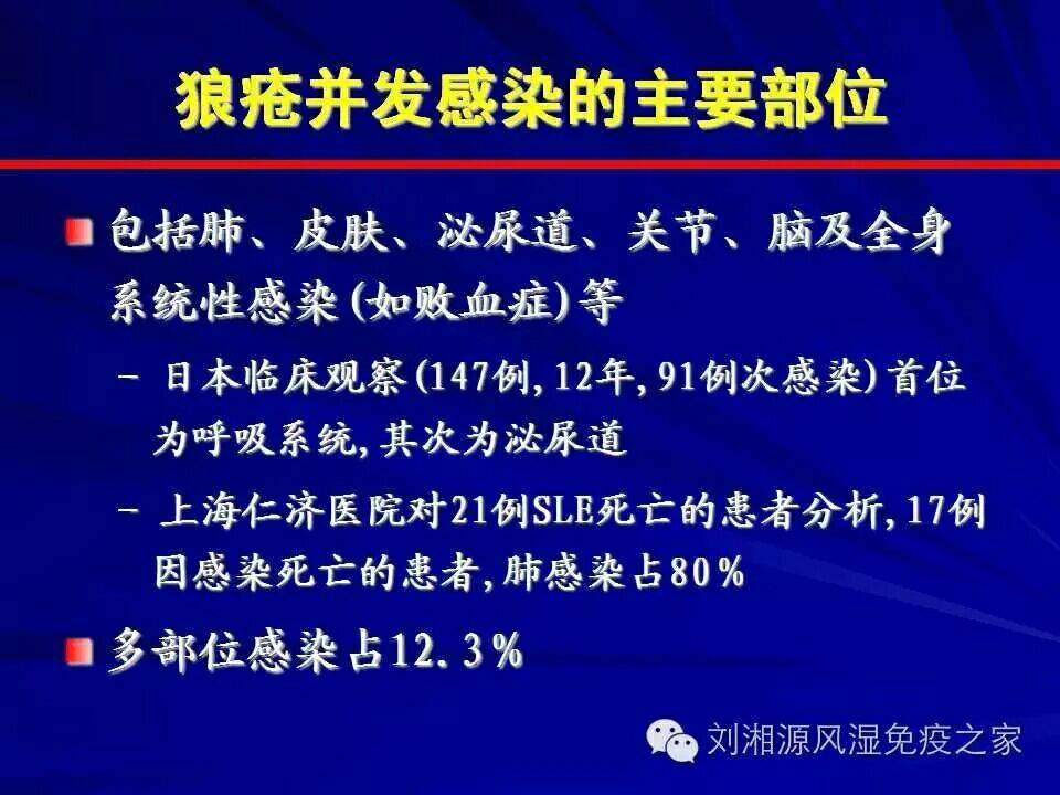 系统性红斑狼疮由于疾病本身的原因及药物的使用,往往极易合并感染,这将进一步加重临床治疗的困难。