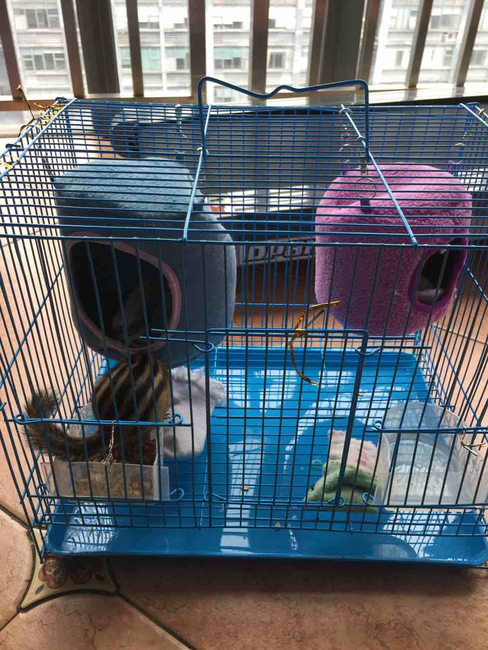 每天都是我爸负责照料,昨天我爸回乡下了,俩松鼠竟然大逃亡,后来才发现笼子被咬断了一根铁丝。