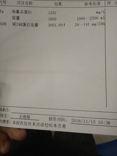 早上抽了血,验了尿,结果拿出来了,但是要到下午才能看我的主治医生,这次结果感觉不怎么好,尿蛋白又上升到两千多毫克了,前两个月来查还是九百多毫克呢,你们的尿蛋白也是这样反反复复的吗?对于病情的保养你们有什么“秘诀”吗?希望你们可以分享分享哦