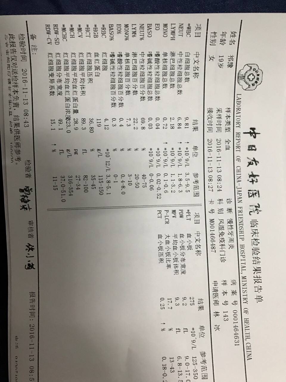 这个月的检查结果 血沉终于正常了 血脂也正常了
