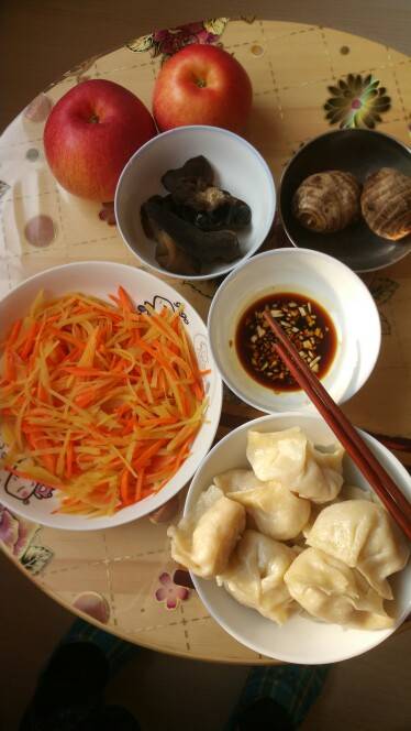 我喜欢吃饺子。白菜鸡蛋香菇。