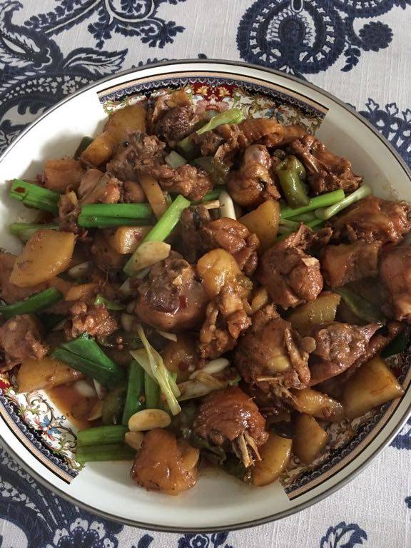 西北地区的人也都爱吃这个大盘鸡,尤其是里面的那个土豆,炖的黏糊糊的,真是美味,说着就流口水了