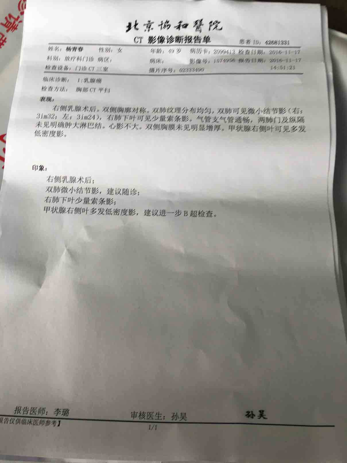 没事的,我妈妈跟你的检查结果一样,医生说没事,随访就可以了