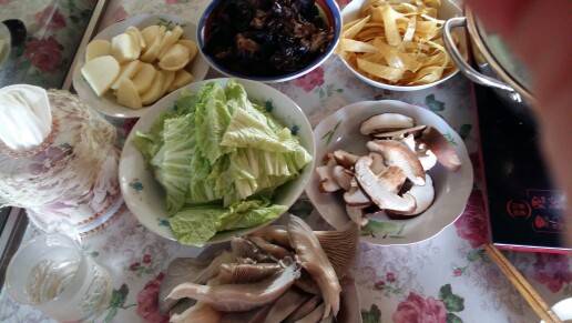 老公专门买了鸳鸯锅,买了切肉机,买了一只羊,半只牛,冻到冰柜里,准备这个冬天在家吃火锅。今天准备了:木耳、豆皮、香菇、平菇、土豆、白菜、土豆、牛肉、羊肉,开饭了!
