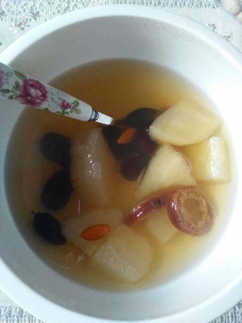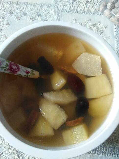 我也煮了,黄桃苹果山楂,还放冰糖了