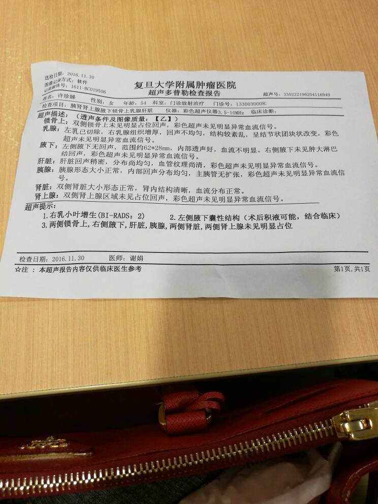 谢谢姐妹们的鼓励,给主治医生看了,说没事的,就放心了,后天可以去三亚静静的休养了,也希望姐妹们健康快乐,每天有个好心情,