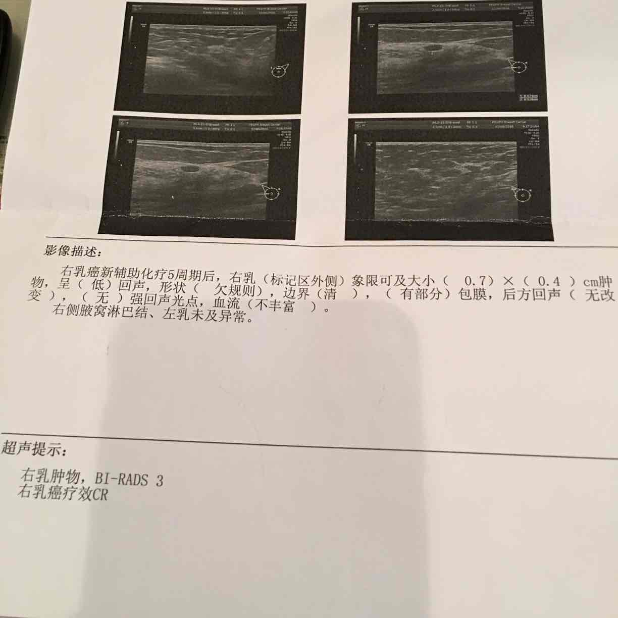本人新辅助化疗/Ac—Th方案,六疗第八天的b超检查显示cr(完全溶解),还剩两次化疗,是否最后能PCR?有类似情况的姐妹吗?特想了解最后的手术方案及是否需要放疗?