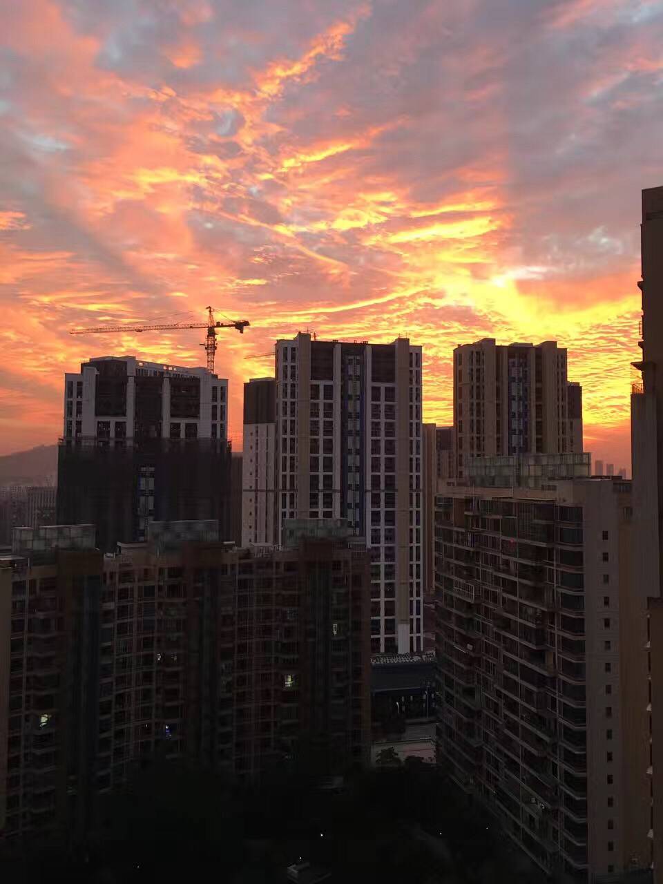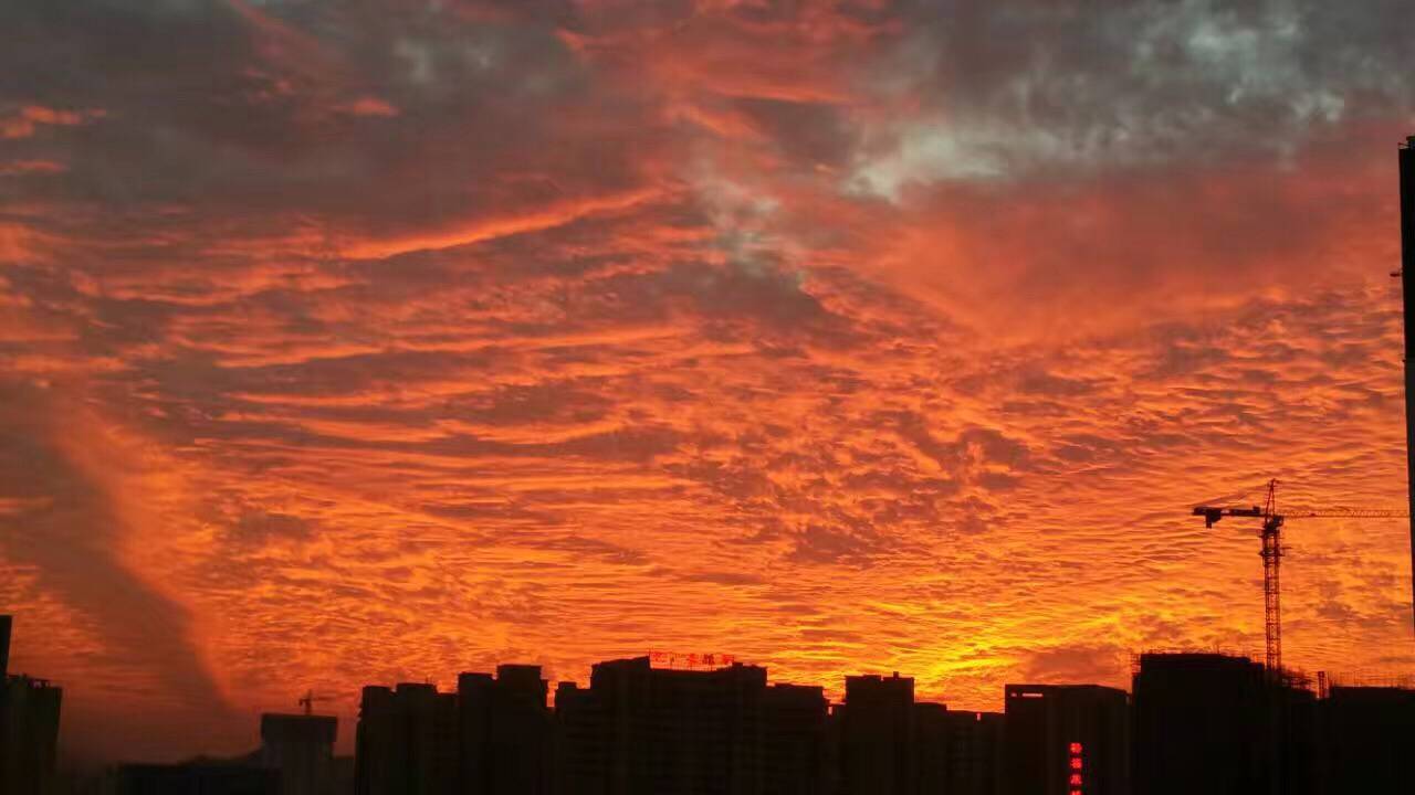 今儿的天气暖暖哒,上午晴空万里,傍晚秒变火烧云,漂亮极了