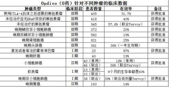 Opdivo的有效率