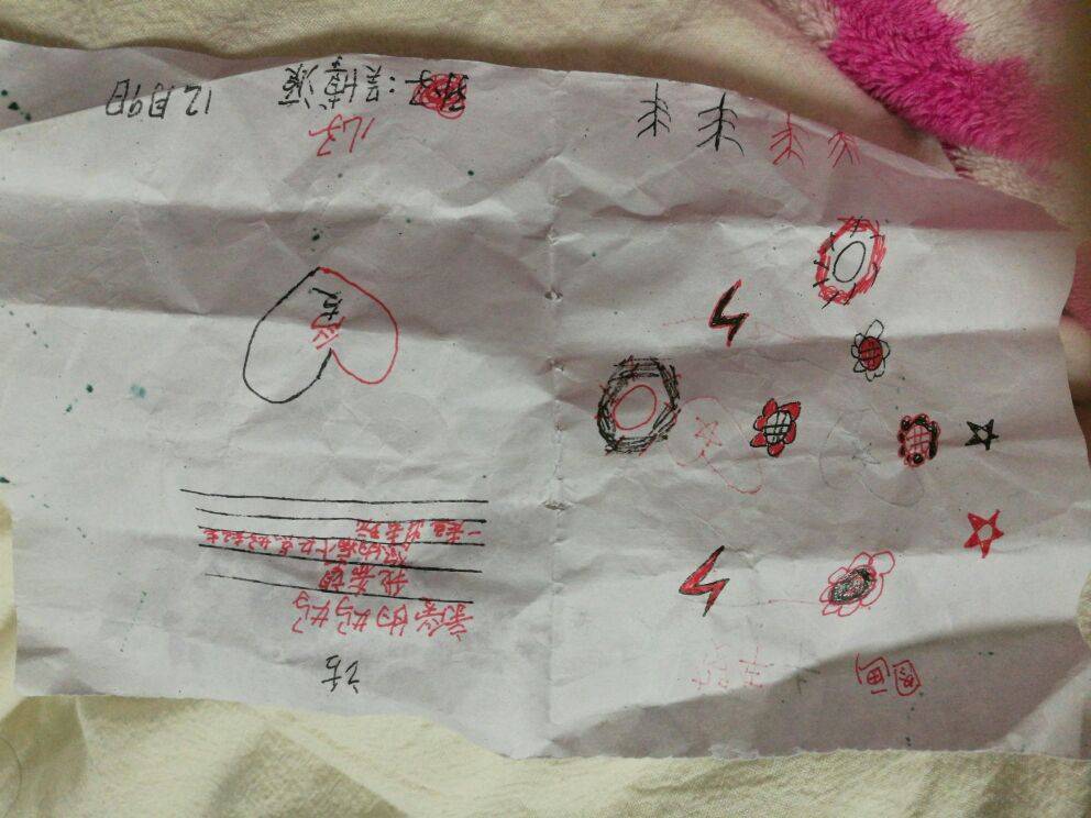 昨天来住院,今天用药五疗,离开时二年级的大儿子拿了张纸给我,嘱咐我到了再看或车上看,现在不能看!中班的小儿子也常说妈咪什么时候好吧?好想和妈咪一起睡觉啊!从小到大都是和我一起睡的,生病了就和奶奶睡了!💓💓💓💓