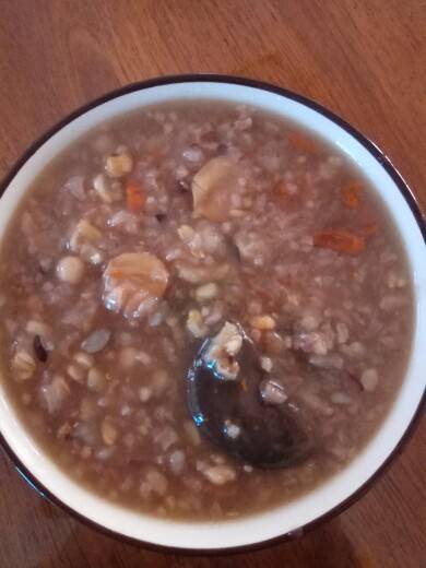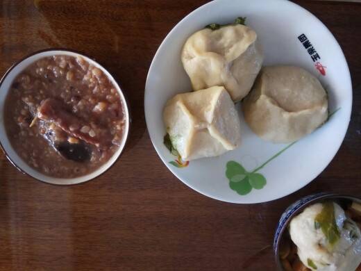 儿子:“老妈,昨晚看你咳得那么厉害,今天感觉咋样啊?有力气了吗?”“今天感觉挺好的啊,到现在也没怎么咳了,有力气呢!”“那我们做包子和煲药膳粥作为今天的中餐,咋样?”“/:ok/:,@-D”!一番对话过后俩母子开始动手!儿子搓粉,老妈弄馅/::D!经过一番努力,终于出锅,吃上了中餐/::>!还别说,味道挺不错的!/:,@-D/::B!