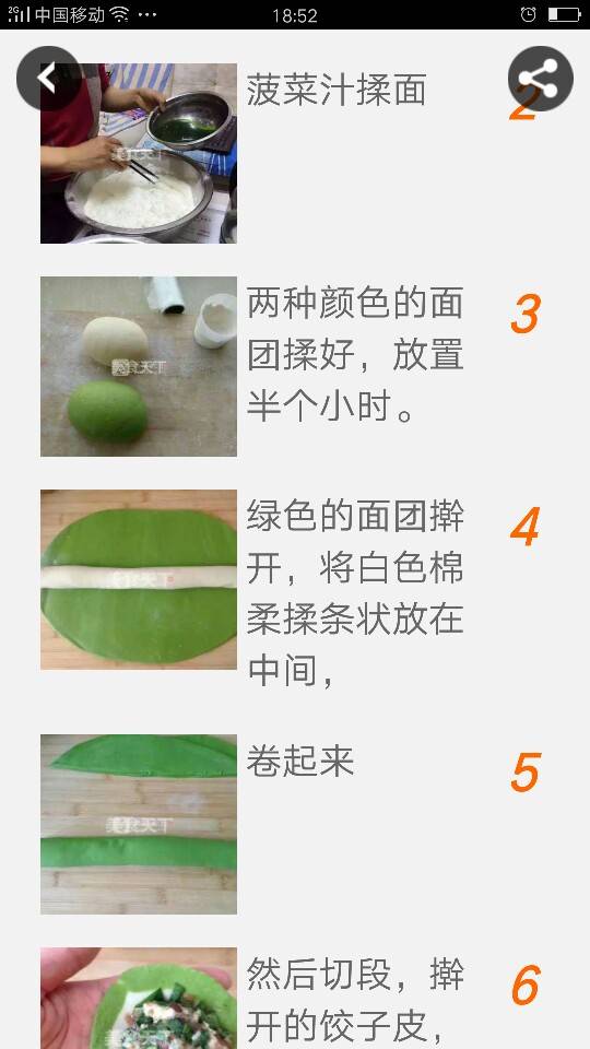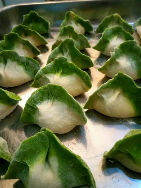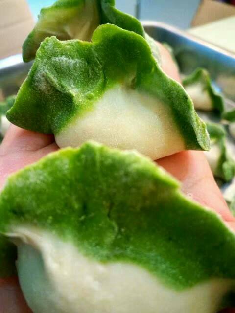 做法很简单哦,就是两种面,绿色的面是用菠菜汁调成的哦