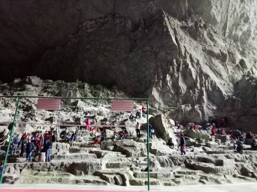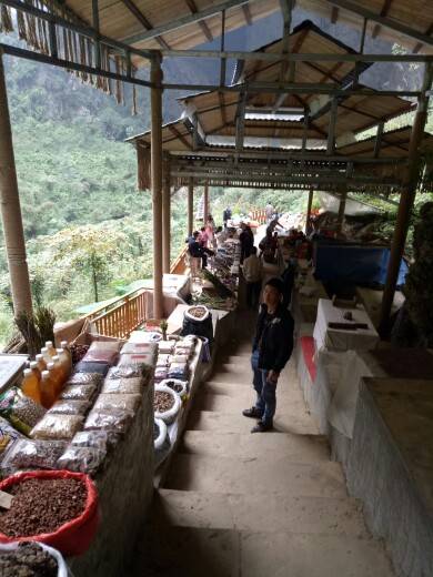 12月10日,今天是双日,因为办了百魔洞双日月票,决定去百魔洞练功,更能大量吸氧,姐姐们说,她们先去蓝色之声大家唱,唱完歌再进洞会合,我先行进洞。这是第二次进洞,这次走的比上次快,想着在吸氧区练郭功,但是我没想到洞里七里拐弯的,练郭功预备功和收功是要按病情定方向的,洞里有光,但没有阳光,☀看不见,抬头有坐井观天的感觉。东南西北方向不明,手机也没信号,怎么练,询问了好几个人,包括洞里面的工作人员,他们也都搞不清,平日只说前后左右,不讲东南西北的!后悔这次出行没带指南针,看来这月票办的实在是失策啊!(建议大家到这里来就买门票一张85元,空气哪里都含氧量高。没必要进洞,体质弱的洞里寒气重,常来也不适宜)无奈,不练也罢!出洞!出洞!上次进洞没去瑶族山寨,今天上去看看,有当地村民做小生意,卖草药、铁皮石斛、香菇等干菜!在磁疗区看到众多的候鸟人或躺或坐的在岩石上进行磁疗。快到洞口时,碰到杨姐她们,眉飞色舞的满脸喜悦的说:“今天见到谁了,你猜猜???”见熟人了!“不是,见到崔学东老师了,你没见真是遗憾!我们现在终于明白,他为什么能战胜癌魔了。”她们给我看录的视频!看了姐姐录的视频,我才理解他为什么能干过癌症,可以这么说:他是一个性格外向、激情四射、有着很强感染力、浑身充满正能量、永不言败的过来者,跟他在一起,你的情绪会被激发,你的能量会被释放,你的心情会被感染,满满的正能量(有机会我和觅健君联系,视频如何发到帖子里,分享给大家😄)。
