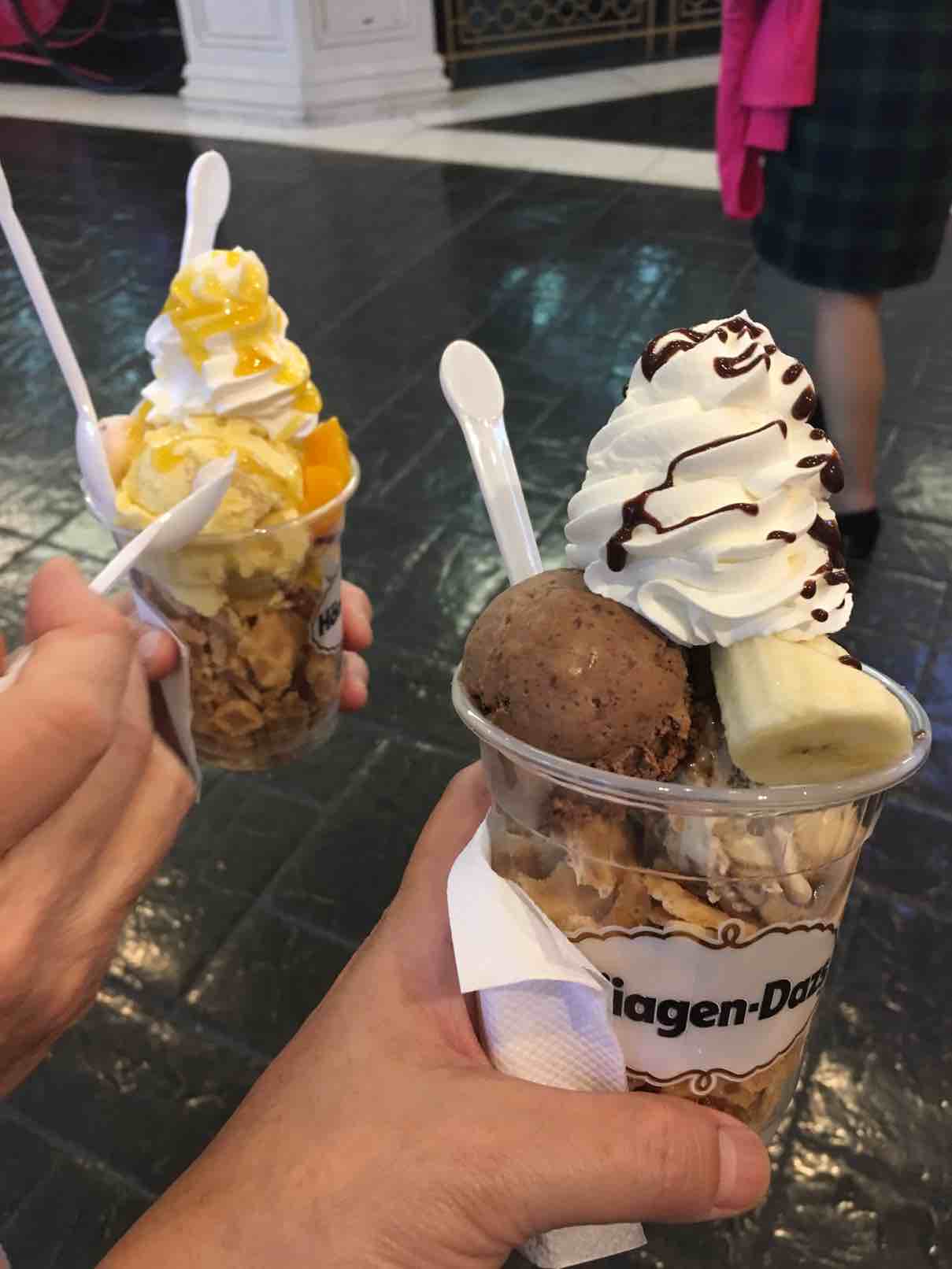 晚上漫步在威尼斯人酒店的大运河购物中心,品尝了著名的安德鲁蛋挞,又吃了哈根达斯冰激凌